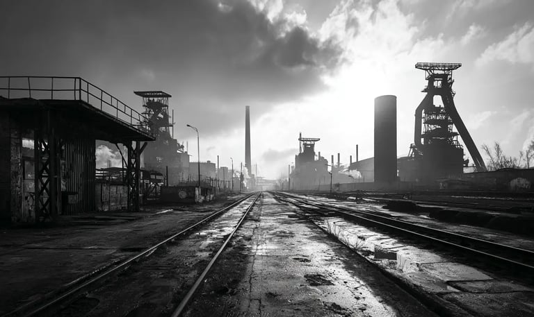 Ruhmann’s journeys through the former USSR bring him to abandoned factories — vast, emptied spaces where industry has long since faded. Shot in monochrome with a Leica Q2, the images capture rusted machinery, fractured light, and the slow return of nature. They are portraits of a landscape caught between memory and erosion.